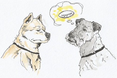 The two fourlegs stare at Donuts not really getting the first part of the plan, nor the last part, not any part of it, exactly.