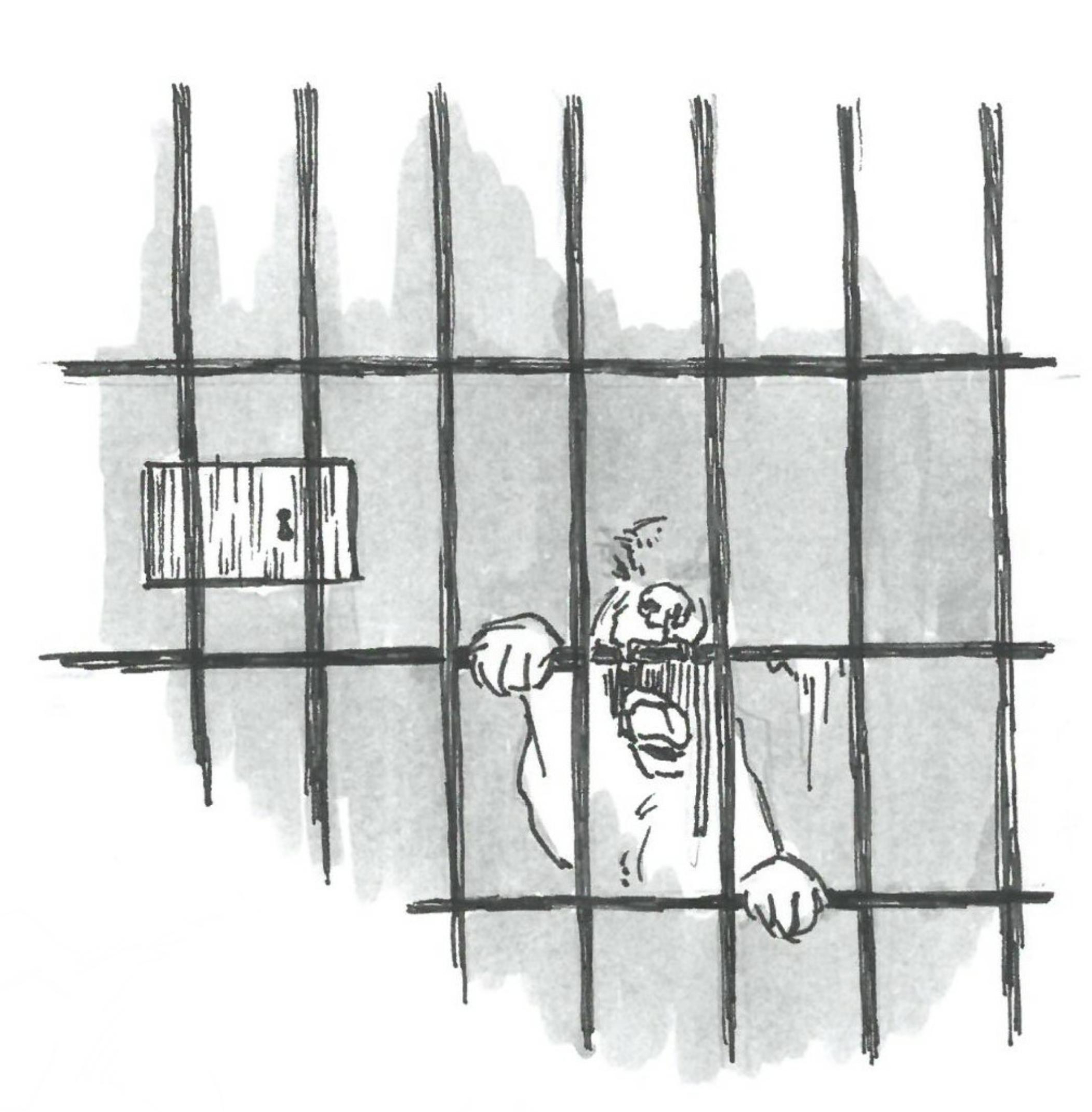 He waits at the door of an empty cage wotz no different from the others yor pied-à-terre, trot in if yu please