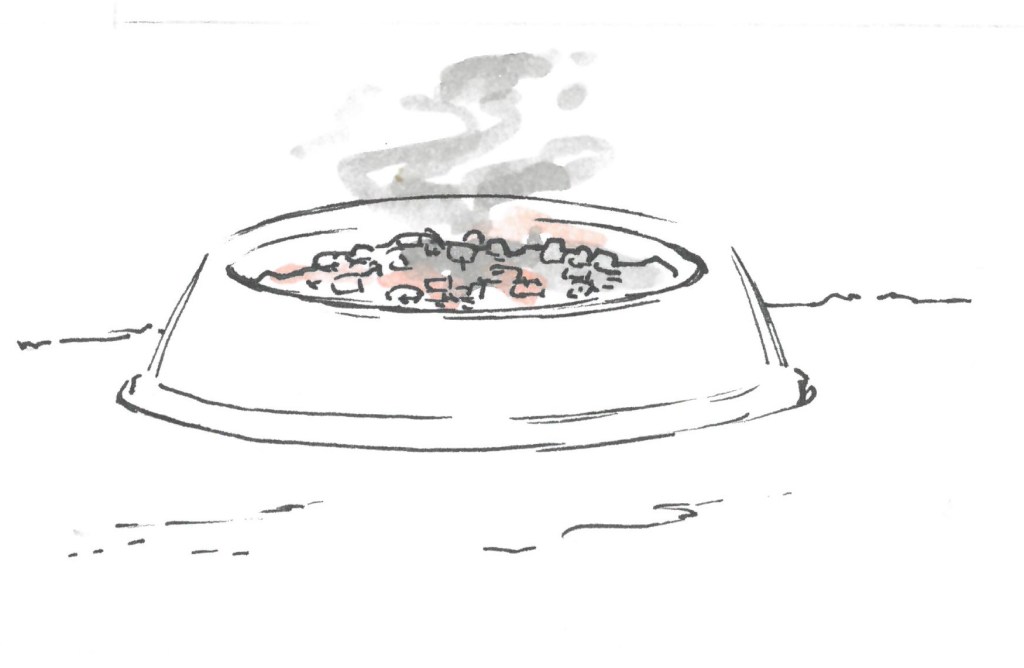 That’ll be mine, I reckon she licks the contents off the spoon. The next spoonful follows the same route as the last – straight down her nosh hole.