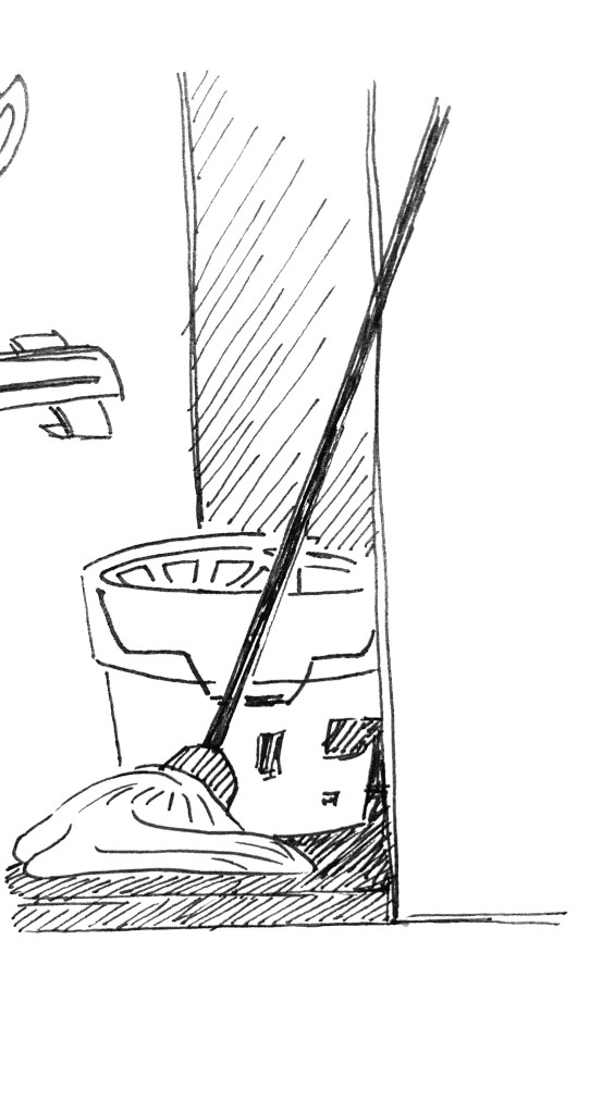 And where’s that daft, sharp-sniffy hindlegs? it don’t take long to snifz him out, sniffing sharp coz of all the bleach he’s always using.The daft sharp-sniffy hindlegs is down the other end of the hallway rubbing at the floors and wasting more waterlick, corss.